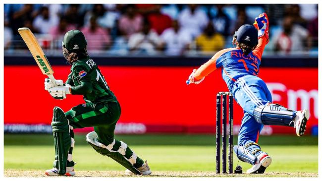 рдкрд╛рдХрд┐рд╕реНрддрд╛рди рдХреА рдкрд╛рд░реА рдХреЗ 14рд╡реЗрдВ рдУрд╡рд░ рдХреА рдЖрдЦрд┐рд░реА рдЧреЗрдВрдж рдкрд░ рдЖрд╢рд╛ рд╢реЛрднрдирд╛ рдЕрдкрдиреА рдШреВрдорддреА рдЧреЗрдВрдж рд╕реЗ рдкрд╛рдХрд┐рд╕реНрддрд╛рдиреА рдХрдкреНрддрд╛рди рдХреЛ рдЫрдХрд╛рдиреЗ рдореЗрдВ рд╕рдлрд▓ рд░рд╣реАрдВред рдлрд╛рддрд┐рдорд╛ рд╕рдирд╛ рдЖрд╢рд╛ рдХреА рдмреЙрд▓ рдХреЛ рдкрдврд╝ рдирд╣реАрдВ рд╕рдХреАрдВ рдФрд░ рдЧреЗрдВрдж рдЙрдирдХреЗ рдмрд▓реНрд▓реЗ рдХрд╛ рднрд╛рд░реА рдХрд┐рдирд╛рд░рд╛ рд▓реЗрдХрд░ рдкреАрдЫреЗ рдХреА рддрд░рдл рдЧрдИред рд╡рд┐рдХреЗрдЯ рдХреЗ рдкреАрдЫреЗ рдПрдХрджрдо рдореБрд╕реНрддреИрдж рдЦрдбрд╝реАрдВ рдЛрдЪрд╛ рдШреЛрд╖ рдиреЗ рдЕрдкрдиреА рдмрд╛рдИрдВ рддрд░рдл рддреЗрдЬреА рд╕реЗ рдбрд╛рдЗрд╡ рд▓рдЧрд╛рддреЗ рд╣реБрдП рдмреЗрд╣рддрд░реАрди рдХреИрдЪ рд▓рдкрдХрд╛ред рдЛрдЪрд╛ рдиреЗ рдХрдорд╛рд▓ рдХреЗ рд░рд┐рдлреНрд▓реИрдХреНрд╕реАрд╕ рджрд┐рдЦрд╛рддреЗ рд╣реБрдП рдЗрд╕ рдХреИрдЪ рдХреЛ рдорд╣рдЬ 0.44 рд╕реЗрдХрдВрдб рдореЗрдВ рдкреВрд░рд╛ рдХрд┐рдпрд╛ред рдлрд╛рддрд┐рдорд╛ рдмрд▓реНрд▓реЗ рд╕реЗ рдХреБрдЫ рдЦрд╛рд╕ рдХрдорд╛рд▓ рдирд╣реАрдВ рджрд┐рдЦрд╛ рд╕рдХреАрдВ рдФрд░ 13 рд░рди рдмрдирд╛рдХрд░ рдЪрд▓рддреА рдмрдиреАрдВред