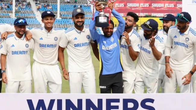 IND vs BAN: भारत ने दूसरे टेस्ट मैच में बांग्लादेश को हराकर सीरीज 2-0 से जीत ली है। इस सीरीज को जीत के बाद टीम इंडिया के कप्तान रोहित शर्मा ने कुछ ऐसा किया, जिसकी हर कोई तारीफ कर रहा है। दरअसल इस मैच को जीतने के बाद जब अवार्ड दिए जा रहे थे तो रोहित शर्मा ने ट्रॉफी लेकर थ्रो डाउन स्पेशलिस्ट राघवेंद्र द्विवेदी उर्फ रघु भैया को दे दी थी।