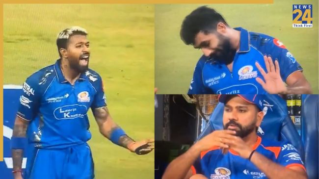 Rohit Sharma Reaction Viral: 16 अप्रैल को आईपीएल 2026 में मुंबई इंडियंस और पंजाब किंग्स के बीच मुकाबला खेला गया था. इस मैच को पंजाब किंग्स ने 7 विकेट से जीत लिया और मुंबई को लगातार चौथी हार का सामना करना पड़ा. इस मैच से सोशल मीडिया पर एक वीडियो वायरल हुआ, जिसमें हार्दिक पांड्या और जसप्रीत बुमराह के बीच झड़प देखी जा सकती है. डग आउट में बैठे रोहित शर्मा का रिएक्शन भी इस दौरान वायरल हुआ.