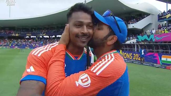 Rohit Sharma Kiss Hardik Pandya: आईपीएल 2024 से पहले दिग्गज रोहित शर्मा और ऑलराउंडर हार्दिक पांड्या के खराब रिश्ते के बारे में खबरें चलने लगी थी। सीजन 17 के दौरान रोहित फैंस ने पांड्या को जमकर ट्रोल किया। मैदान पर भी उन्हें बहुत ज्यादा बू किया गया था। जिसके बाद दोनों खिलाड़ी साथ में टी20 विश्व कप 2024 में खेलते हुए नजर आए। टीम इंडिया के ट्रॉफी जीतने के बाद हिटमैन ने पांड्या को मैदान पर किस किया था। जिसके बारे में अब रोहित शर्मा ने पहली बार खुलकर बोला है।