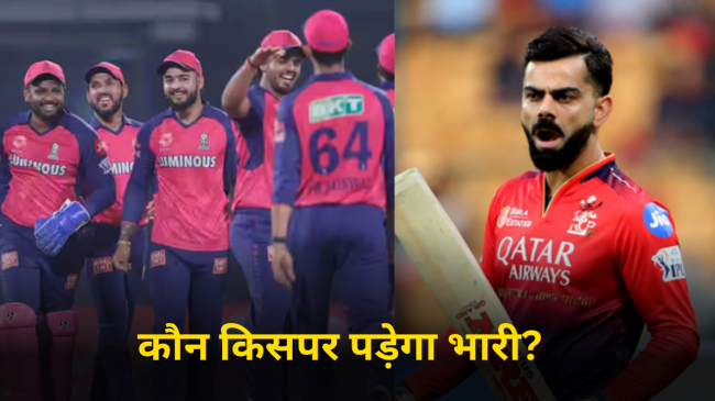 RCB vs RR: 24 अप्रैल को आरसीबी बनाम राजस्थान रॉयल्स के बीच मुकाबला खेला जाएगा। अब तक खेले गए मुकाबले में आरसीबी ने शानदार प्रदर्शन किया है। आरसीबी ने अब तक खेले गए 8 मैच में 5 मैच जीते हैं, जबकि 3 मुकाबले में टीम को हार का सामना करना पड़ा है। वहीं बात राजस्थान रॉयल्स की करें तो टीम का हाल बेहाल है। अब तक खेले गए 8 मैच में टीम को 6 हार और 2 ही जीत मिल पाई है। राजस्थान का सफर लगभग प्ले ऑफ से खत्म हो चुका है। हालांकि दोनों टीमों का हेड टू आंकड़ा काफी दिलचस्प रहा है।