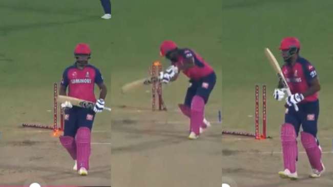 3.5 рдУрд╡рд░ рдореЗрдВ рд╕рдВрдЬреВ рд╕реИрдорд╕рди рдиреЗ рдХреЗрдХреЗрдЖрд░ рдХреЗ рддреЗрдЬ рдЧреЗрдВрджрдмрд╛рдЬ рд╡реИрднрд╡ рдЕрд░реЛрд░рд╛ рдХреА рдЧреЗрдВрдж рдкрд░ рдмрдбрд╝рд╛ рд╢реЙрдЯ рдЦреЗрд▓рдиреЗ рдХрд╛ рдкреНрд░рдпрд╛рд╕ рдХрд┐рдпрд╛ред рд▓реЗрдХрд┐рди рд╡рд╣ рдХреНрд▓реАрди рдмреЛрд▓реНрдб рд╣реЛ рдЧрдПред рджрд░рдЕрд╕рд▓ рд╕рдВрдЬреВ рдиреЗ рдЕрд░реЛрд░рд╛ рдХреА рдЧреЗрдВрдж рдкрд░ рдЖрдЧреЗ рдмрдврд╝рдХрд░ рдмрдбрд╝рд╛ рд╢реЙрдЯ рдЦреЗрд▓рдиреЗ рдХрд╛ рдкреНрд░рдпрд╛рд╕ рдХрд┐рдпрд╛ред рд▓реЗрдХрд┐рди рд╡рд╣ рдЗрд╕ рджреМрд░рд╛рди рдмрдбрд╝реА рдЧрд▓рддреА рдХрд░ рдмреИрдареЗред рд╕рдВрдЬреВ рдУрд╡рд░рдкрд┐рдЪ рдЧреЗрдВрдж рдкрд░ рдЖрдЧреЗ рдмрдврд╝ рдЧрдП, рдЬрд┐рд╕рдХреА рд╡рдЬрд╣ рд╕реЗ рдУрд╡рд░рдкрд┐рдЪ рдЧреЗрдВрдж рдпреЙрд░реНрдХрд░ рдЧреЗрдВрдж рдореЗрдВ рддрдмреНрджреАрд▓ рд╣реЛ рдЧрдИ рдФрд░ рдЙрдиреНрд╣реЗрдВ рдХреНрд▓реАрди рдмреЛрд▓реНрдб рд╣реЛрдирд╛ рдкрдбрд╝рд╛ред рд╕рдВрдЬреВ рдЗрд╕ рдореИрдЪ рдореЗрдВ рдЕрдЪреНрдЫреА рд▓рдп рдореЗрдВ рднреА рдирдЬрд░ рдирд╣реАрдВ рдЖрдПред рдЙрдиреНрд╣реЛрдВрдиреЗ 11 рдЧреЗрдВрджреЛрдВ рдореЗрдВ 13 рд░рдиреЛрдВ рдХреА рдкрд╛рд░реА рдЦреЗрд▓реА рдереАред