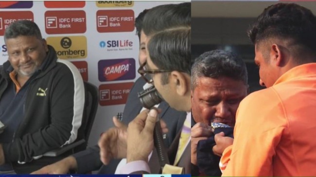 Sarfaraz Khan Father Reaction on Test Debut, IND vs ENG: गुरुवार को भारत और इंग्लैंड के बीच राजकोट में टेस्ट सीरीज का तीसरा मैच शुरू हुआ। इस मैच में सरफराज खान का डेब्यू काफी चर्चा का विषय रहा। वहीं सरफराज के डेब्यू के बाद उनके पिता नौशाद ने जिस तरह रिएक्शन दिया और भावुक हो गए, उस पर भी काफी चर्चा हुई। इसकी तस्वीरें और वीडियो सोशल मीडिया पर वायरल हुए। फिर इसके बाद भारतीय कप्तान रोहित शर्मा ने भी सरफराज के पिता को गले लगाया। उसके बाद उनके पिता कमेंट्री बॉक्स में भी नजर आए। यहां से उनका पहला बयान सामने आया।