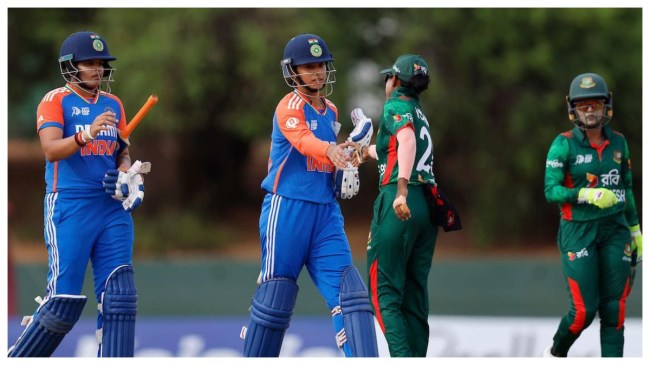 सेमीफाइनल में भारतीय महिला टीम ने बांग्लादेश को दस विकेट से हरा दिया। पहले बल्लेबाजी करने उतरी बांग्लादेश की पूरी टीम सिर्फ 80 रन बना कर आउट हो गई थी। भारत के लिए रेनुका ठाकुर ने 4 ओवर में 10 रन देकर 3 विकेट हासिल किए। उनके अलावा राधा यादव ने 2 विकेट हासिल किए थे। इस मैच को टीम इंडिया ने मात्र 11 ओवर में ही जीत लिया। इस मैच में जीत हासिल करने के बाद टीम इंडिया ने फाइनल में जगह बना ली है।