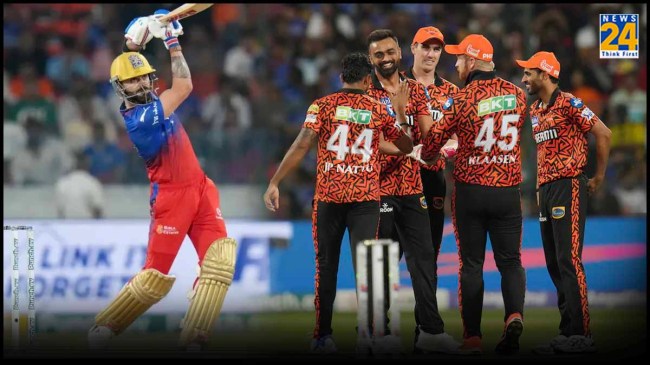 SRH vs RCB, Virat Kohli: IPL 2024 के 41वें मुकाबले में सनराइजर्स हैदराबाद का सामना रॉयल चैलेंजर्स बेंगलुरु से हो रहा है। हैदराबाद के राजीव गांधी स्टेडियम में खेले जा रहे इस मैच में विराट कोहली ने अर्धशतक लगाया। उन्होंने 43 गेंदों पर 51 रन की पारी खेली। इस दौरान उन्होंने 4 चौके और 1 छक्का लगाया। जयदेव उनादकट ने उन्हें अब्दुल समद के हाथों कैच आउट कराया।