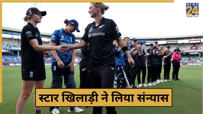 Sophie Devine: महिला विश्व कप 2025 का 27वां मैच न्यूजीलैंड बनाम इंग्लैंड के बीच खेला गया था. इस मैच में इंग्लैंड ने शानदार प्रदर्शन किया और 8 विकेट से मुकाबला जीत लिया. इस मुकाबले के बाद न्यूजीलैंड को बड़ा झटका लगा, क्योंकि कीवी टीम की कप्तान सोफी डिवाइन ने वनडे क्रिकेट से संन्यास का ऐलान कर दिया. सोफी डिवाइन को इंग्लैंड की खिलाड़ियों ने गार्ड ऑफ ऑनर दिया, जिसकी तस्वीरे भी सोशल मीडिया पर वायरल हो रही हैं.