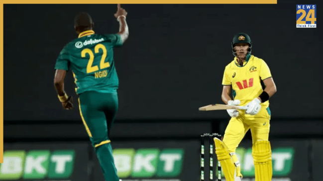 ऑस्ट्रेलिया और साउथ अफ्रीका के बीच 3 मैचों की वनडे सीरीज खेली जा रही है। सीरीज का दूसरा मैच 22 अगस्त को खेला गया। इस मैच को साउथ अफ्रीका ने शानदार प्रदर्शन करते हुए अपने नाम कर लिया। अफ्रीका ने 84 रनों से मुकाबला जीता और वनडे सीरीज भी अपने नाम कर ली। साउथ अफ्रीका की ओर से तेज गेंदबाज लुंगी एंगिडी ने कमाल की गेंदबाजी की और 5 विकेट हॉल लेकर ऑस्ट्रेलिया को चाारों खाने चित कर दिया।