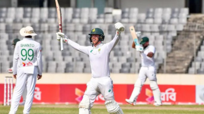 बांग्लादेश के खिलाफ खेले जा रहे दूसरे मैच में साउथ अफ्रीका ने 575/6 रन बनाकर पारी घोषित कर दी। अफ्रीका की ओर से टोनी डी जोर्जी ने 269 गेंदों में 177 रन बनाए थे। जबकि ट्रिस्टन स्टब्स ने 198 गेंदों में 177 रन बनाए। उनके अलावा वियान मल्डर ने 150 गेंदों में 105 रनों की पारी खेली। तीनों बल्लेबाजों की मदद से साउथ अफ्रीका ने एशियाई सरजमीं पर टेस्ट में तीसरा सबसे बड़ा टोटल स्कोर भी खड़ा किया। अफ्रीका ने इससे पहले साल 2008 में बांग्लादेश के खिलाफ चटगांव में ही 583/7 रन बनाए थे।