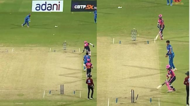рдЯреАрдо рдХреЗ рднрд░реЛрд╕реЗрдордВрдж рдмрд▓реНрд▓реЗрдмрд╛рдЬ рд╣рд░реНрд╖ рдореЛрдЧрд╛рд╡реАрд░рд╛ рдЕрдиреЛрдЦрд╛ рддрд░реАрдХреЗ рд╕реЗ рд░рдирдЖрдЙрдЯ рд╣реЛрдХрд░ рдкрд╡реЗрд▓рд┐рдпрди рд▓реМрдЯреЗред рд╣реБрдЖ рдпреВрдВ рдХрд┐ рд╕рд┐рджреНрдзреЗрд╢ рд╡реАрд░ рдиреЗ рдЧреЗрдВрдж рдХреЛ рд▓реЗрдЧ рд╕рд╛рдЗрдб рдХреА рддрд░рдл рдЦреЗрд▓рд╛ рдФрд░ рд░рди рд▓реЗрдиреЗ рдХреЗ рд▓рд┐рдП рджреМрдбрд╝реЗред рджреВрд╕рд░реЗ рдЫреЛрд░ рдкрд░ рдЦрдбрд╝реЗ рд╣рд░реНрд╖ рдкрд╣рд▓реЗ рдХреНрд░реАрдЬ рд╕реЗ рдмрд╛рд╣рд░ рдирд┐рдХрд▓реЗ, рд▓реЗрдХрд┐рди рдлрд┐рд░ рджреЛрдиреЛрдВ рд╣реА рдмрд▓реНрд▓реЗрдмрд╛рдЬреЛрдВ рдиреЗ рд░рди рдирд╣реАрдВ рд▓реЗрдиреЗ рдХрд╛ рдлреИрд╕рд▓рд╛ рдХрд┐рдпрд╛ред рдЕрдм рд╡рд┐рдХреЗрдЯрдХреАрдкрд░ рдиреЗ рдмреЙрд▓ рдХреЗ рдкреАрдЫреЗ рджреМрдбрд╝ рд▓рдЧрд╛рдИ рдФрд░ рд╕реНрдЯрдВрдк рдкрд░ рдирд┐рд╢рд╛рдирд╛ рд╕рд╛рдзрд╛ред рдЧреЗрдВрдж рдбрд╛рдпрд░реЗрдХреНрдЯ рд╕реНрдЯрдВрдк рдкрд░ рдЖрдХрд░ рд▓рдЧреА, рд▓реЗрдХрд┐рди рдмрд▓реНрд▓реЗрдмрд╛рдЬ рдЗрдзрд░ рдХреНрд░реАрдЬ рдХреЗ рдЕрдВрджрд░ рдкрд╣реБрдВрдЪ рдЪреБрдХрд╛ рдерд╛ред