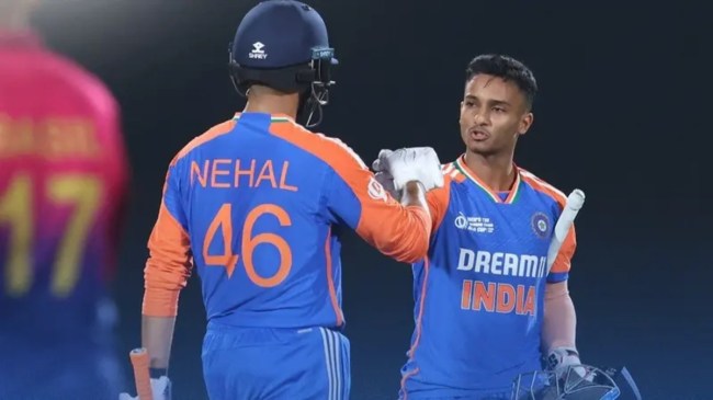 इससे पहले टीम इंडिया की शुरुआत कुछ खास नहीं रही थी। टीम इंडिया ने अपना पहला विकेट पहले ही ओवर में खो दिया था। प्रभसिमरन सिंह 8 रन बनाकर आउट हो गए थे। उनके आउट होने के बाद अभिषेक ने कप्तान तिलक वर्मा के साथ पारी को आगे बढ़ाया। दोनों ने मिलकर दूसरे विकेट के लिए 72 रनों की पार्टनरशिप की। इस दौरान तिलक 18 गेंदों में 21 रन बनाकर आउट हो गए। उनके आउट होने के बाद अभिषेक भी आउट हो गए। इसके बाद नेहल और आयुष बडोनी ने टीम इंडिया को जीत दिला दी।