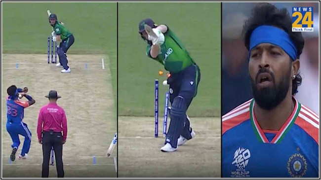IND vs IRE Hardik Pandya: टी-20 वर्ल्ड कप में भारत ने शानदार शुरुआत की है। भारतीय गेंदबाजों के आगे आयरलैंड के बल्लेबाजों ने घुटने टेक दिए। आयरलैंड की टीम 96 रन के स्कोर पर ही ढेर हो गई। टीम के चार बल्लेबाज ही दहाई का आंकड़ा छू सके। भारतीय गेंदबाजों ने शानदार प्रदर्शन करते हुए एक के बाद एक विकेट चटका डाले। उप-कप्तान हार्दिक पांड्या भी फॉर्म में लौट आए। उन्होंने बेहतरीन गेंदबाजी से महफिल लूटी। इस दौरान हार्दिक की एक गेंद ने लोगों को दिल जीत लिया। हार्दिक ने अपनी इनस्विंगर से आयरिश बल्लेबाज को ऐसा चकमा दिया कि वह पोज मारता ही रह गया। गेंद ने स्टंप की गिल्लियां उड़ा दीं।