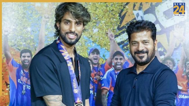 Tilak Varma T20 World Cup 2026: टी-20 वर्ल्ड कप 2026 में भारत ने शानदार प्रदर्शन करते हुए फाइनल में न्यूजीलैंड को हराया और खिताब पर कब्जा जमाया. भारत बैक टू बैक टी-20 वर्ल्ड कप जीतने वाली पहली और इकलौती टीम भी बन गई है. टीम इंडिया के स्टार बल्लेबाज तिलक वर्मा भी टी-20 वर्ल्ड कप 2026 में भारतीय टीम का हिस्सा थे. अब वर्ल्ड चैंपियन बनने के बाद तिलक को तेलंगाना के मुख्यमंत्री रेवंत रेड्डी ने सम्मानित किया है.