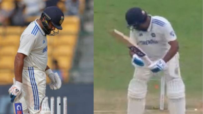 न्यूजीलैंड को 259 रन पर समेटने के बाद भारत की ओर से रोहित शर्मा और यशस्वी जायसवाल की सलामी जोड़ी मैदान पर उतरी। रोहित शुरुआत से ही क्रीज पर सहज नजर नहीं आए। 8 गेंदों का सामना करने के बावजूद रोहित अपना खाता तक नहीं खोल सके थे। टिम साउदी के ओवर की आखिरी गेंद पर रोहित हवा में ही बीट हो गए और बॉल उनका ऑफ स्टंप ले उड़ी। रोहित के हाव-भाव देखकर साफतौर पर लग रहा था कि वह साउदी की इस गेंद को समझने में पूरी तरह से नाकाम रहे। रोहित को ना चाहते हुए भी बिना खाता खोलने पवेलियन लौटना पड़ा। टेस्ट सीरीज में हिटमैन दूसरी बार जीरो पर आउट हुए हैं।