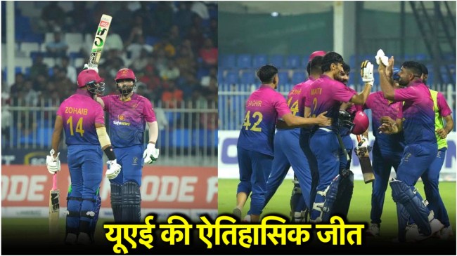 UAE vs BAN: यूएई ने बांग्लादेश को 2 विकेट से हराते हुए टी-20 इंटरनेशनल में बड़ा उलटफेर कर डाला है।