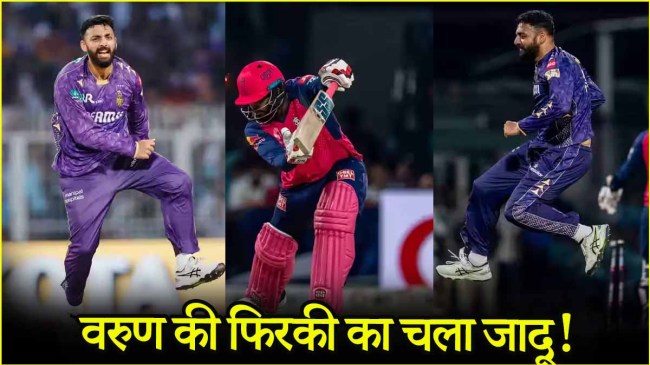 Varun Chakaravarthy: рдИрдбрди рдЧрд╛рд░реНрдбрдиреНрд╕ рдХреЗ рдореИрджрд╛рди рдкрд░ рдХреЗрдХреЗрдЖрд░ рдХреЗ рдЗрдВрдЬреАрдирд┐рдпрд░ рд╕рд╛рд╣рдм рдХреА рдлрд┐рд░рдХреА рдХрд╛ рдЬрд╛рджреВ рд╕рд┐рд░ рдЪрдврд╝рдХрд░ рдмреЛрд▓ рд░рд╣рд╛ рд╣реИред рдПрдХ рдУрд╡рд░ рдореЗрдВ рд╣реА рд╡рд░реБрдг рдЪрдХреНрд░рд╡рд░реНрддреА рдиреЗ рдореИрдЪ рдХреА рдкреВрд░реА рдХрд╣рд╛рдиреА рдХреЛ рдкрд▓рдЯрдХрд░ рд░рдЦ рджрд┐рдпрд╛ рд╣реИред рд░рд╛рдЬрд╕реНрдерд╛рди рд░реЙрдпрд▓реНрд╕ рдХреЗ рдмрд▓реНрд▓реЗрдмрд╛рдЬреЛрдВ рдХреЗ рд▓рд┐рдП рдХреЛрд▓рдХрд╛рддрд╛ рдХрд╛ рдпрд╣ рдорд┐рд╕реНрдЯреНрд░реА рд╕реНрдкрд┐рдирд░ рдЕрдмреВрдЭ рдкрд╣реЗрд▓реА рд╕рд╛рдмрд┐рдд рд╣реЛ рд░рд╣рд╛ рд╣реИред рддреАрди рдЧреЗрдВрджреЛрдВ рдХреЗ рдЕрдВрджрд░ рд╡рд░реБрдг рдиреЗ рд╡рд┐рдкрдХреНрд╖реА рдЯреАрдо рдХреЗ рджреЛ рдмрд▓реНрд▓реЗрдмрд╛рдЬреЛрдВ рдХреЛ рдХреНрд▓реАрди рдмреЛрд▓реНрдб рдХрд░рддреЗ рд╣реБрдП рдкрд╡реЗрд▓рд┐рдпрди рдХреА рд░рд╛рд╣ рджрд┐рдЦрд╛рдИред рдбрд┐рдлреЗрдВрдбрд┐рдВрдЧ рдЪреИрдВрдкрд┐рдпрди рд╕реЗ рдорд┐рд▓реЗ 207 рд░рдиреЛрдВ рдХреЗ рд▓рдХреНрд╖реНрдп рдХрд╛ рдкреАрдЫрд╛ рдХрд░рддреЗ рд╣реБрдП рдореЗрд╣рдорд╛рди рдЯреАрдо рдХреЗ рдкрд╛рдВрдЪ рдмрд▓реНрд▓реЗрдмрд╛рдЬ рд╕рд┐рд░ рдЭреБрдХрд╛рдХрд░ рдкрд╡реЗрд▓рд┐рдпрди рд▓реМрдЯ рдЪреБрдХреЗ рд╣реИрдВред