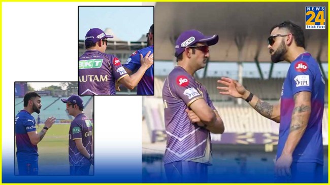 Gautam Gambhir, Virat Kohli: IPL 2024 के 36वें मैच में रविवार को कोलकाता नाइटराइडर्स का सामना रॉयल चैलेंजर्स बेंगलुरु से होगा। यह मैच कोलकाता के ईडन गार्डन मैदान पर खेला जाएगा। मुकाबले के लिए RCB कोलकाता पहुंच चुकी है। इस बीच KKR ने सोशल मीडिया पर एक वीडियो पोस्ट किया है। इस वीडियो में गौतम गंभीर और विराट कोहली आमने-सामने नजर आ रहे हैं। यह वीडियो अब सोशल मीडिया पर तेजी से वायरल हो रहा है। इस वीडियो के साथ कैप्शन में लिखा गया, “झप्पी लगा लिया, वे चीजें जो हम क्रिकेट के मैदान पर देखना पसंद करते हैं।”