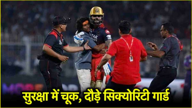 IPL 2025 KKR vs RCB: आईपीएल 2025 सीजन-18 का पहला मुकाबला कोलकाता नाइट राइडर्स और रॉयल चैलेंजर्स बेंगलुरु के बीच ईडन गार्डन्स में खेला गया। इस मैच में आरसीबी ने केकेआर को 7 विकेट से हारकर जीत के साथ टूर्नामेंट का शानदार आगाज किया है। विराट कोहली ने इस मैच में कमाल की बल्लेबाजी का नजारा पेश किया। वहीं मैच के दौरान कोहली की सुरक्षा में चूक भी देखने को मिली।