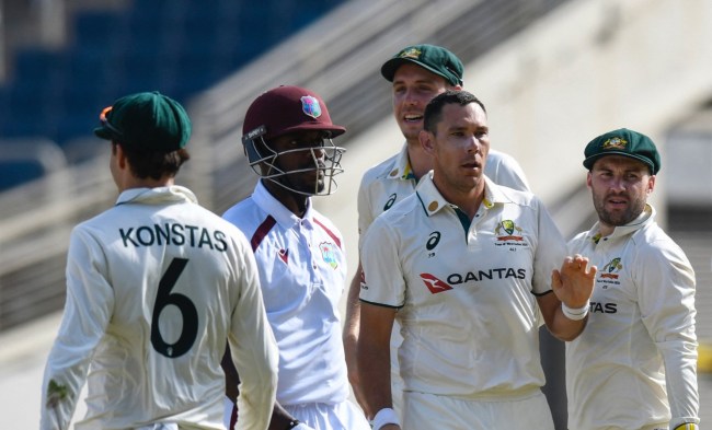 ऑस्ट्रेलिया ने टेस्ट सीरीज के तीसरे और आखिरी मैच में बवाल मचाया। पैट कमिंस की टीम ने पहले बल्लेबाजी करते हुए 225 रन बनाए। जवाब में वेस्ट इंडीज 143 रन पर ही ढेर हो गया। ऑस्ट्रेलिया दूसरी पारी में 121 रन पर ऑल आउट हो गया और इंडीज को 204 रन का लक्ष्य मिला। ऑस्ट्रेलिया ने इसके बाद कुछ ऐसा कर दिया, जिसकी उम्मीद नहीं थी। उन्होंने मात्र 27 रन पर मेजबान टीम को ऑल आउट कर दिया। मिचेल स्टार्क ने 6, स्कॉट बोलैंड ने 3 और जोश हेजलवुड ने 1 विकेट झटकते हुए आखिरी मैच में ऑस्ट्रेलिया को जीत दिला दी।