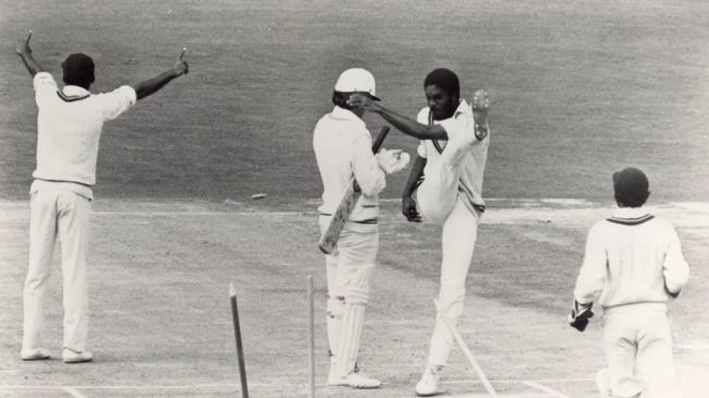 Michael Holding kicks over the stumps in frustration after a decision for caught behind is turned down during NZ-WI Test#OnThisDay in 1980 pic.twitter.com/sZyHAw8BHn