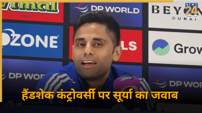 सूर्यकुमार यादव ने हैंडशेक कंट्रोवर्सी पर कहा कि आप और किन चीजों की बात कर रहे हैं? (हंसते हुए). आप गेंद के साथ हमारे प्रदर्शन की बात कर रहे हैं? (हंसते हुए) यह बल्ले और गेंद के बीच एक अच्छा मुकाबला है. पूरा स्टेडियम खचाखच भरा हुआ है. सबसे अच्छी बात यह है कि आप अपना सर्वश्रेष्ठ प्रदर्शन करें और अपने देश के लिए सर्वश्रेष्ठ प्रदर्शन करें.