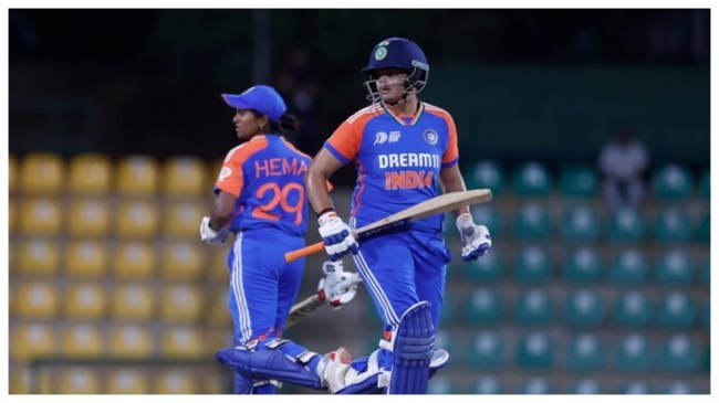 Women’s Asia Cup 2024: भारत और नेपाल के बीच महिला एशिया कप 2024 का 10वां मुकाबला खेला गया। इस मैच में भारत ने 82 रनों से जीत हासिल की है। 179 रन के स्कोर का पीछा करते हुए नेपाल की टीम 9 विकेट खोकर निर्धारित ओवर में सिर्फ 96 रन ही बना सकी। भारतीय महिला टीम की ये लगातार तीसरी जीत है। इस जीत के साथ ही भारतीय टीम ने सेमीफाइनल में जगह बना ली है। भारत ग्रुप ए में टॉप पर है। इससे पहले भारत ने पाकिस्तान और UAE को मात दी थी।