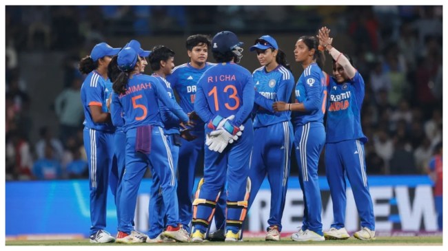हरमनप्रीत कौर (कप्तान), ऋचा घोष (विकेट कीपर), उमा छेत्री (विकेट कीपर ), स्मृति मंधाना (उपकप्तान), शेफाली वर्मा, दीप्ति शर्मा, पूजा वस्त्रकार, अरुंधति रेड्डी, जेमिमा रोड्रिग्स, रेणुका ठाकुर, दयालन हेमलता, आशा शोभना, राधा यादव, श्रेयंका पाटिल, सजीवन सजना ।