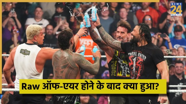 सोशल मीडिया पर शो ऑफ-एयर होने का वीडियो सामने आया है. लोगन पॉल रिंग में गिरे हुए हैं और बेबीफेस टीम के सभी सदस्य वहां पर खड़े थे. कोडी रोड्स, जे उसो, सीएम पंक और रोमन रेंस ने प्राइम की बोतलों से जश्न मनाया और फिर लोगन के ऊपर पूरी ड्रिंक गिरा दी. जिमी उसो भी अपने दोनों हाथों में प्राइम की बोतलें लिए जश्न मना रहे थे.