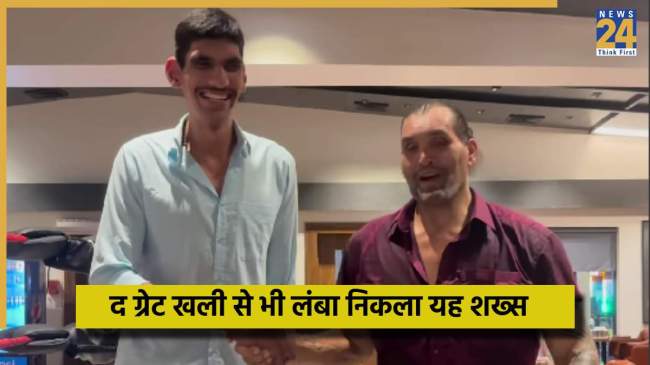 WWE दिग्गज द ग्रेट खली ने इंस्टाग्राम पर एक खास वीडियो पोस्ट किया है, जिसमें वह अपने से लंबे शख्स के साथ दिख रहे हैं. सोशल मीडिया पर उनका यह वीडियो खूब वायरल हो रहा है.