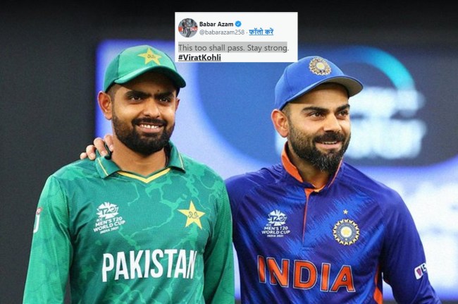 рдмрд╛рдмрд░ рдЖрдЬрдо рдиреЗ 15 рдЬреБрд▓рд╛рдИ рдХреЛ рдЦрд░рд╛рдм рдлреЙрд░реНрдо рд╕реЗ рдЬреВрдЭ рд░рд╣реЗ рд╡рд┐рд░рд╛рдЯ рдХреЛрд╣рд▓реА рдХреЗ рд╕рдорд░реНрдерди рдореЗрдВ рдПрдХ рдЯреНрд╡реАрдЯ рдХрд┐рдпрд╛ рдерд╛ред рдЗрд╕ рдЯреНрд╡рд┐рдЯ рдореЗрдВ рдмрд╛рдмрд░ рдиреЗ рдХреЛрд╣рд▓реА рдХреЗ рд╕рд╛рде рдЕрдкрдиреА рддрд╕реНрд╡реАрд░ рднреА рд╢реЗрдпрд░ рдХреА рдереА, рдЬрд┐рд╕рдореЗрдВ рд▓рд┐рдЦрд╛ рдерд╛ рдХрд┐ ‘рдпрд╣ рд╡рдХреНрдд рднреА рдирд┐рдХрд▓ рдЬрд╛рдПрдЧрд╛, рдордЬрд╝рдмреВрдд рд░рд╣рд┐рдП’ред
