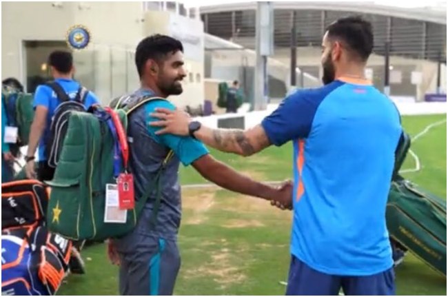बाबर विराट के कई रिकॉर्ड तोड़ चुके हैं, लेकिन ये बल्लेबाज जब भी एक दूसरे से मिलते हैं, तो इतनी गर्मजोशी से मिलते हैं कि दुनियाभर में छा जाते हैं। बाबर विराट की खराब फॉर्म पर उनका सपोर्ट कर चुके हैं। पिछले साल टी 20 वर्ल्ड कप में भी दोनों की तस्वीरें इंटरनेट पर छाई रहीं। बाबर आजम, मोहम्मद रिजवान समेत कई खिलाड़ी पूर्व कप्तान विराट कोहली से गर्मजोशी से मिले। विराट भी उन्हें पूरा सम्मान और आदर देते हुए नजर आए थे।