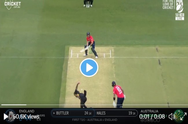 ऑस्ट्रेलिया की तरफ से पांचवा ओवर लेकर आए केन रिचर्डसन ने ओवर की अंतिम गेंद शॉट पिच फेंकी। बॉल को परख चुके बटलर तुरंत ऑफ स्टंप पर गए और हटकर पीछे की ओर बॉल को सीधे स्टेडियम में भेज दिया। पीछे बैठे हुए दर्शक ने भी कैच पकड़कने की कोशिश, लेकिन वह भी नाकाम रहा।