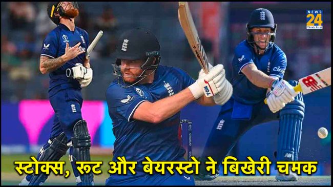 ODI World Cup 2023. рд╡рд░реНрд▓реНрдб рдХрдк 2023 рдХрд╛ 44рд╡рд╛рдВ рдореБрдХрд╛рдмрд▓рд╛ рдЗрдВрдЧреНрд▓реИрдВрдб рдФрд░ рдкрд╛рдХрд┐рд╕реНрддрд╛рди рдХреЗ рдмреАрдЪ рдХреЛрд▓рдХрд╛рддрд╛ рд╕реНрдерд┐рдд рдИрдбрди рдЧрд╛рд░реНрдбрдиреНрд╕ рд╕реНрдЯреЗрдбрд┐рдпрдо рдореЗрдВ рдЦреЗрд▓рд╛ рдЬрд╛ рд░рд╣рд╛ рд╣реИред рдЗрд╕ рдореБрдХрд╛рдмрд▓реЗ рдореЗрдВ рдЯреЙрд╕ рдЬреАрддрдХрд░ рдкрд╣рд▓реЗ рдмрд▓реНрд▓реЗрдмрд╛рдЬреА рдХрд░рддреЗ рд╣реБрдП рдЗрдВрдЧреНрд▓рд┐рд╢ рдЯреАрдо рдирд┐рд░реНрдзрд╛рд░рд┐рдд рдУрд╡рд░реЛрдВ рдореЗрдВ рдиреМ рд╡рд┐рдХреЗрдЯ рдХреЗ рдиреБрдХрд╕рд╛рди рдкрд░ 337 рд░рди рдмрдирд╛рдиреЗ рдореЗрдВ рдХрд╛рдордпрд╛рдм рд╣реБрдИ рд╣реИред рдЗрдВрдЧреНрд▓реИрдВрдб рдХреЗ рдЗрд╕ рдЙрдореНрджрд╛ рд╕реНрдХреЛрд░ рдореЗрдВ рдПрдХ рдмрд╛рд░ рдлрд┐рд░ рдЕрдиреБрднрд╡реА рдСрд▓рд░рд╛рдЙрдВрдбрд░ рдмреЗрди рд╕реНрдЯреЛрдХреНрд╕ рдХрд╛ рдмрд▓реНрд▓рд╛ рдЬрдордХрд░ рдЪрд▓рд╛ рд╣реИред рдЙрдиреНрд╣реЛрдВрдиреЗ рдЕрдкрдиреА рдЯреАрдо рдХреЗ рд▓рд┐рдП рдЪреМрдереЗ рдХреНрд░рдо рдкрд░ рдмрд▓реНрд▓реЗрдмрд╛рдЬреА рдХрд░рддреЗ рд╣реБрдП рдХреБрд▓ 76 рдЧреЗрдВрджреЛрдВ рдХрд╛ рд╕рд╛рдордирд╛ рдХрд┐рдпрд╛ред рдЗрд╕ рдмреАрдЪ 110.52 рдХреА рд╕реНрдЯреНрд░рд╛рдЗрдХ рд░реЗрдЯ рд╕реЗ 84 рд░рди рдмрдирд╛рдиреЗ рдореЗрдВ рдХрд╛рдордпрд╛рдм рд░рд╣реЗред рдЗрд╕ рдмреАрдЪ рдЙрдирдХреЗ рдмрд▓реНрд▓реЗ рд╕реЗ 11 рдЪреМрдХреЗ рдПрд╡рдВ рджреЛ рдмреЗрд╣рддрд░реАрди рдЫрдХреНрдХреЗ рдирд┐рдХрд▓реЗред