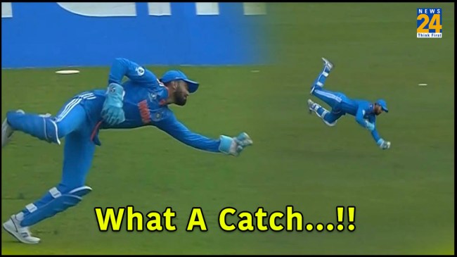 рдХреЗрдПрд▓ рд░рд╛рд╣реБрд▓ рдиреЗ 25рд╡реЗрдВ рдУрд╡рд░ рдХреА рдкрд╣рд▓реА рдЧреЗрдВрдж рдкрд░ рдпрд╣ рд╣реИрд░рддрдЕрдВрдЧреЗрдЬ рдХреИрдЪ рдкрдХрдбрд╝рд╛ред рдореЛрд╣рдореНрдордж рд╕рд┐рд░рд╛рдЬ рдиреЗ рд▓реЗрдЧ рд╕реНрдЯрдВрдк рд╕реЗ рдмрд╛рд╣рд░ рдЬрд╛рддреА рд╣реБрдИ рдЧреЗрдВрдж рдлреЗрдВрдХреА рдФрд░ рдорд┐рд░рд╛рдЬ рдЙрд╕реЗ рдлрд╛рдЗрди рд▓реЗрдЧ рдмрд╛рдЙрдВрдбреНрд░реА рд╕реЗ рдмрд╛рд╣рд░ рднреЗрдЬрдирд╛ рдЪрд╛рд╣рддреЗ рдереЗред рдЗрд╕рдХреЗ рдмрд╛рдж рджрд┐рдЦрд╛ рд░рд╛рд╣реБрд▓ рдХрд╛ рдПрдХреНрд╢рди рдЬрд┐рдиреНрд╣реЛрдВрдиреЗ рд▓реЗрдЧ рд╕реНрдЯрдВрдк рдкрд░ рдпрд╛рдиреА рдЕрдкрдиреА рдмрд╛рдИрдВ рдУрд░ рдмреЗрд╣рддрд░реАрди рдбрд╛рдЗрд╡ рд▓рдЧрд╛рдИ рдФрд░ рдХреИрдЪ рдкрдХрдбрд╝рд╛ред рдЙрдирдХреЗ рдЗрд╕ рдХреИрдЪ рдХрд╛ рд╡реАрдбрд┐рдпреЛ рджреЗрдЦ рдЖрдк рднреА рдЦреБрдж рдХреЛ рдпрд╣ рдХрд╣рдиреЗ рд╕реЗ рд░реЛрдХ рдирд╣реАрдВ рдкрд╛рдПрдВрдЧреЗ ‘рд╡рд╛рд╣…’!
