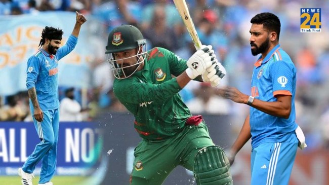 IND vs BAN ODI World Cup 2023: рднрд╛рд░рдд рдмрдирд╛рдо рдмрд╛рдВрдЧреНрд▓рд╛рджреЗрд╢ рдХреЗ рдмреАрдЪ рдЖрдИрд╕реАрд╕реА рд╡рд┐рд╢реНрд╡ рдХрдк 2023 рдХрд╛ 17рд╡рд╛рдВ рдореБрдХрд╛рдмрд▓рд╛ рдЦреЗрд▓рд╛ рдЬрд╛ рд░рд╣рд╛ рд╣реИред рдЗрд╕ рдореИрдЪ рдореЗрдВ рдмрд╛рдВрдЧреНрд▓рд╛рджреЗрд╢ рдиреЗ рдкрд╣рд▓реЗ рдмрд▓реНрд▓реЗрдмрд╛рдЬреА рдХрд░рддреЗ рд╣реБрдП 256 рд░рди рдмрдирд╛ рджрд┐рдП рд╣реИрдВред рдмрд╛рдВрдЧреНрд▓рд╛рджреЗрд╢ рдиреЗ рдЯреЙрд╕ рдЬреАрддрдХрд░ рдкрд╣рд▓реЗ рдмрд▓реНрд▓реЗрдмрд╛рдЬреА рдХрд░рдиреЗ рдХрд╛ рдлреИрд╕рд▓рд╛ рдХрд┐рдпрд╛ рдерд╛ред рдмрд▓реНрд▓реЗрдмрд╛рдЬреА рдореЗрдВ рдмрд╛рдВрдЧреНрд▓рд╛рджреЗрд╢ рдХреА рд╢реБрд░реБрдЖрдд рддреЛ рдХрд╛рдлреА рд╢рд╛рдирджрд╛рд░ рд░рд╣реАред рдмрд╛рдВрдЧреНрд▓рд╛рджреЗрд╢ рдХрд╛ рдкрд╣рд▓рд╛ рд╡рд┐рдХреЗрдЯ 93 рдХреЗ рд╕реНрдХреЛрд░ рдкрд░ рдЧрд┐рд░рд╛ред рдЗрд╕ рджреМрд░рд╛рди рдРрд╕рд╛ рд▓рдЧ рд░рд╣рд╛ рдерд╛ рдХрд┐ рдмрд╛рдВрдЧреНрд▓рд╛рджреЗрд╢ рднрд╛рд░рдд рдХреЗ рд╕рд╛рдордиреЗ 300 рд╕реЗ рдЕрдзрд┐рдХ рдХрд╛ рд▓рдХреНрд╖реНрдп рд░рдЦреЗрдЧрд╛, рд▓реЗрдХрд┐рди рднрд╛рд░рдд рдХреЗ рдЧреЗрдВрджрдмрд╛рдЬреЛрдВ рдиреЗ рдПрдХ рдХреЗ рдмрд╛рдж рдПрдХ рд╡рд┐рдХреЗрдЯ рдЭрдЯрдХ рдХрд░ рдЯреАрдо рдХреА рд╡рд╛рдкрд╕реА рдХрд░рд╛рдИред рд╣рд╛рд▓рд╛рдВрдХрд┐, рд╣рд╛рд░реНрджрд┐рдХ рдкрд╛рдВрдбреНрдпрд╛ рдЗрд╕ рджреМрд░рд╛рди рдЪреЛрдЯрд┐рд▓ рд╣реЛ рдЧрдП рд╣реИрдВред рдкрд╛рдВрдбреНрдпрд╛ рдХреЗ рдкреИрд░ рдореЗрдВ рдореЛрдЪ рдЖрдИ рд╣реИ, рдЗрд╕рдХреЗ рдХрд╛рд░рдг рд╕реЗ рдЙрдиреНрд╣реЗрдВ рдореИрджрд╛рди рд╕реЗ рдмрд╛рд╣рд░ рдЬрд╛рдирд╛ рдкрдбрд╝рд╛ рд╣реИред