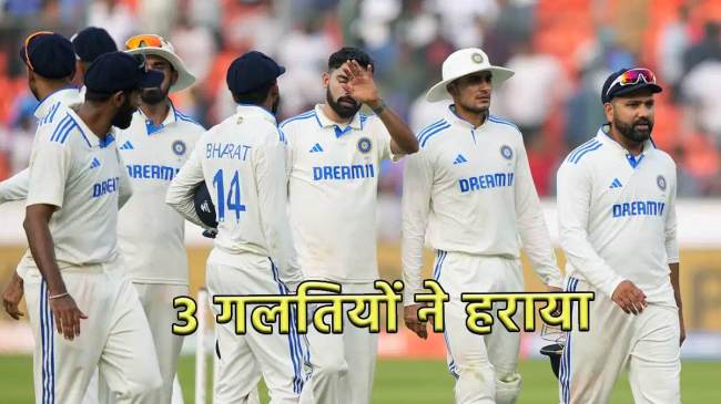 Team India Did these 3 Mistakes: भारतीय टीम ने हैदराबाद में जीता हुआ टेस्ट मैच गंवा दिया है। एक पल के लिए ऐसा लग रहा था कि भारत आसानी से इस मैच को अपनी झोली में डाल लेगा, लेकिन भारत को 28 रनों से हार का सामना करना पड़ा है। ऐसे में 5 मैचों की टेस्ट सीरीज में इंग्लैंड ने 1-0 से बढ़त बना ली है। इस मैच में भारतीय टीम से कई गलतियां हुई हैं, जिसके कारण से मैच गवाना पड़ा है। अगर भारतीय टीम हैदराबाद में मिली हार से ये 3 सीख नहीं लेती है, तो हो सकता है कि फिर से मैच का अंजाम यही होगा। चलिए आपको बताते हैं भारतीय टीम क्या 3 सुधार कर सकती है।