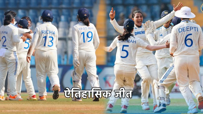 भारत और ऑस्ट्रेलिया के बीच यह मुकाबला मुंबई के वानखेड़े क्रिकेट स्टेडियम में खेला गया। इस मैच से पहले भारत की महिला क्रिकेट टीम ने इंग्लैंड के खिलाफ भी ऐतिहासिक जीत दर्ज की थी। भारत ने इंग्लैंड को 347 रनों से हराया था। अब भारत ने ऑस्ट्रेलिया को भी चारों खाने चित कर दिया है। इससे क्रिकेट फैंस में काफी उत्साह है। ऑस्ट्रेलिया की महिला क्रिकेट टीम हो, या फिर पुरुष क्रिकेट टीम हो, दोनों ही काफी मजबूत है, ऐसे में भारत का ऑस्ट्रेलिया के खिलाफ एकतरफा जीत दर्ज करना बड़ी बात है। भारत की ओर से स्नेह राणा ने इस मैच में सबसे अधिक 7 विकेट लिए हैं। उन्होंने पहली पारी में 3 विकेट चटकाए थे, इसके बाद उन्होंने दूसरी पारी में भी 4 विकेट अपने नाम किया है।