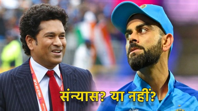 Sachin Answer on Kohli Retire Question: आईसीसी विश्व कप 2023 खत्म होने के बाद से ही विराट कोहली और रोहित शर्मा को लेकर सस्पेंस बरकरार है। फिलहाल सबसे बड़ा सवाल ये बना हुआ है कि क्या कोहली और रोहित को और क्रिकेट खेलना चाहिए या फिर संन्यास ले लेना चाहिए। 2022 का टी20 विश्व कप में भारत की हार के बाद से ही यह चर्चा शुरू हो गई थी, अब जब भारत को वनडे विश्व कप में भी हार मिली है, तो एक बार फिर से फैंस के मन में सवाल उठने लगे हैं कि क्या विराट कोहली अब क्रिकेट से संन्यास ले लेंगे या फिर अभी और अधिक खेलेंगे। क्रिकेट के भगवान कहे जाने वाले पूर्व दिग्गज क्रिकेटर सचिन तेंदुलकर ने इसका जवाब दिया है।