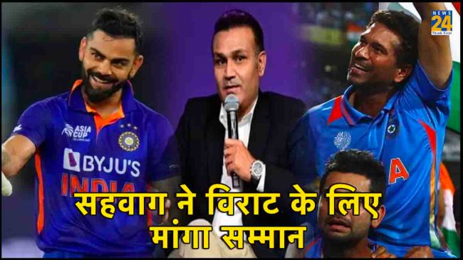 ODI World Cup 2023: पूर्व विस्फोटक बल्लेबाज वीरेंद्र सहवाग ने टीम इंडिया से विराट कोहली के लिए अलग तरीके का सम्मान मांगा है। सहवाग का कहना है कि साल 2011 के विश्व कप में जब भारत विश्व कप जीता था, तो सभी खिलाड़ियों ने सचिन तेंदुलकर को अपने कंधे पर उठाकर उन्हें सम्मानित किया था। उस दौरान विराट कोहली ने कहा था कि सचिन ने सिर्फ 21 साल की उम्र में टीम इंडिया की जिम्मेदारी अपने कंधो पर ले ली थी। इसलिए ये हमारी जिम्मेदारी है कि हम सचिन को अपने कंधों पर उठाएं।