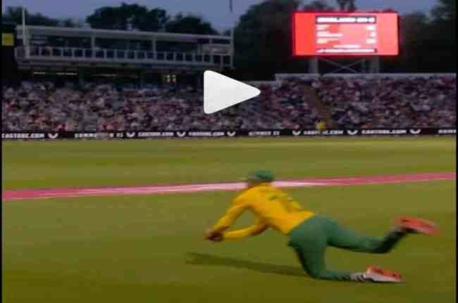 नई दिल्ली: इंग्लैंड और साउथ अफ्रीका के बीच खेले जा रहे है टी20 सीरीज का दूसरा मैच अफ्रीका ने जीत लिया है। पहला मैच हारने के बाद साउथ अफ्रीका के लिए ये मैच जीतना जरुरी था। अफ्रीकी टीम में इस मैच में गजब की वापसी की। पहले बल्लेबाजी करते हुए बल्लेबाजों के स्कोर बोर्ड में बड़ा रन लगा दिया। इसके बाद गेंदबाजों ने इंग्लैंड के बल्लेबाजों को रोक दिया। इस मैच में साउथ अफ्रीकी फील्डर ने एक ऐसा कैच पकड़ा कि सभी देखते रहे गए।