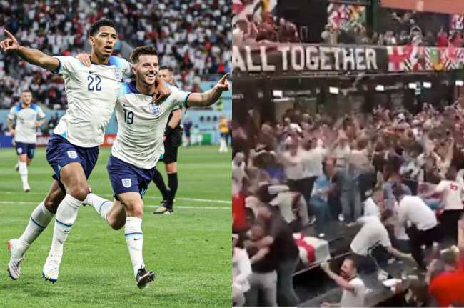 🏴| England fans celebrating Bukayo Saka’s goal today. The scenes! #FIFAWorldCup pic.twitter.com/YSdDd7E3BT