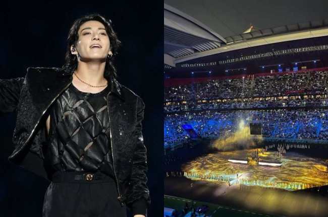 FIFA World Cup 2022: рдХрддрд░ рдореЗрдВ 22рд╡реЗрдВ рдлреБрдЯрдмреЙрд▓ рд╡рд┐рд╢реНрд╡ рдХрдк рдХрд╛ рд╢реБрднрд╛рд░рдВрдн рд╣реЛ рдЪреБрдХрд╛ рд╣реИред рдУрдкрдирд┐рдВрдЧ рд╕реЗрд░реЗрдордиреА рдореЗрдВ рд╕рд╛рдЙрде рдХреЛрд░рд┐рдпрд╛ рдХреЗ рд░реЙрдХ рдмреИрдВрдб BTS рдиреЗ рдкрд░рдлреЙрд░реНрдо рдХрд┐рдпрд╛ рдЙрд╕ рдмреИрдВрдб рдХреЗ рд╕рд╛рдд рд╕рджрд╕реНрдпреЛрдВ рдореЗрдВ рд╕реЗ рдПрдХ рдЬрдВрдЧрдХреБрдХ рдиреЗ рд╢рд╛рдирджрд╛рд░ рдкреНрд░рд╕реНрддреБрддрд┐ рджреАред BTS рдмреИрдВрдб рдиреЗ рдЕрдкрдиреА рдзреБрди рдкрд░ рд╕рдмрдХреЛ рдирд╛рдЪрдиреЗ рдкрд░ рдордЬрдмреВрд░ рдХрд░ рджрд┐рдпрд╛ред рдЬрд┐рдпреЛрди рдЬреВрдВрдЧ-рдХреВрдХ, рдЬрд┐рдиреНрд╣реЗрдВ рдЬреБрдВрдЧрдХреБрдХ рдХреЗ рдирд╛рдо рд╕реЗ рдЬрд╛рдирд╛ рдЬрд╛рддрд╛ рд╣реИ, рдиреЗ рд╕рдмрдХрд╛ рджрд┐рд▓ рдЬреАрдд рд▓рд┐рдпрд╛ рдлреИрдВрд╕ рдЕрдкрдиреА рд╕реАрдЯ рдкрд░ рдЦрдбрд╝реЗ рд╣реЛрдХрд░ рдирд╛рдЪ рд░рд╣реЗ рдереЗред