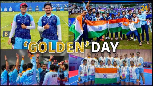 Asian Games 2023: एशियन गेम्स 2023 में आज का दिन भारत के लिए गोल्डन डे साबित हुआ है। भारत ने एक ही दिन में 6 गोल्ड अपने नाम कर लिया है। यह देश के लिए काफी बड़ी उपलब्धि है। आज ही भारत ने 100 मेडल का आंकड़ा भी पार किया और आज ही भारत ने 6 गोल्ड भी अपने नाम कर लिया है। इसको लेकर पीएम नरेंद्र मोदी से केंद्रीय मंत्री अनुराग ठाकुर ने भी भारत को बधाई दी है। भारत के लिए आज दिन की शुरुआत ही गोल्ड के साथ हुई थी। इसके बाद एक के बाद एक गोल्ड भारत की झोली में गिरते चला गया।