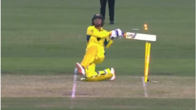Alana King manages to hit a six – and her own wicket – off the same ball!