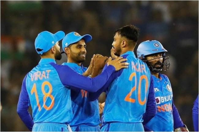 भारत की प्लेइंग इलेवन: 1 रोहित शर्मा (कप्तान), 2 केएल राहुल, 3 विराट कोहली, 4 सूर्यकुमार यादव, 5 ऋषभ पंत, 6 हार्दिक पांड्या, 7 दिनेश कार्तिक (विकेटकीपर), 8 अक्षर पटेल, 9 हर्षल पटेल, 10 जसप्रीत बुमराह, 11 युजवेंद्र चहल