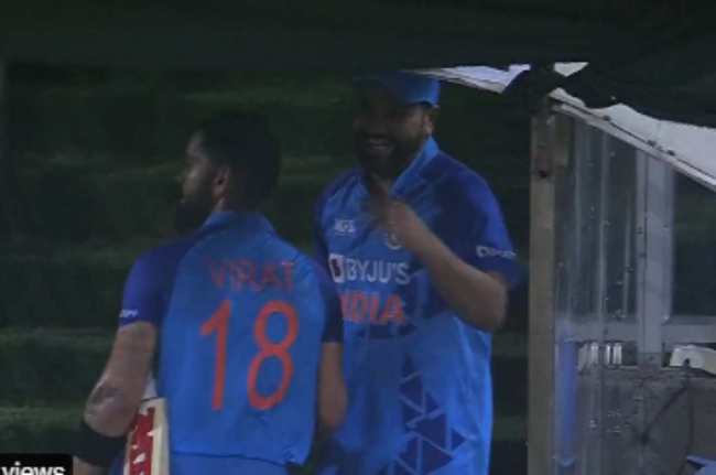 विराट कोहली और सूर्यकुमार जब बल्लेबाजी कर रहे थे। उस समय विराट कोहली के लिए डग आउट से मैसेज आया था। ये मैसेज कप्तान और कोच ने दिया था। दरअसल विराट को डग आउट से कप्तान रोहित शर्मा और कोच राहुल द्रविड़ कोहली को कुछ इशारे कर रहे थे। विराट कोहली ने मैच के बाद बताया कि सूर्यकुमार आते ही तेजी से रन बनाने लगे। तब उन्होंने डगआउट की तरफ देखा वहां से रोहित-राहुल ने कोहली को आराम से बल्लेबाजी करते रहने को कहा क्योंकि सूर्यकुमार आक्रामक हो गए थे।