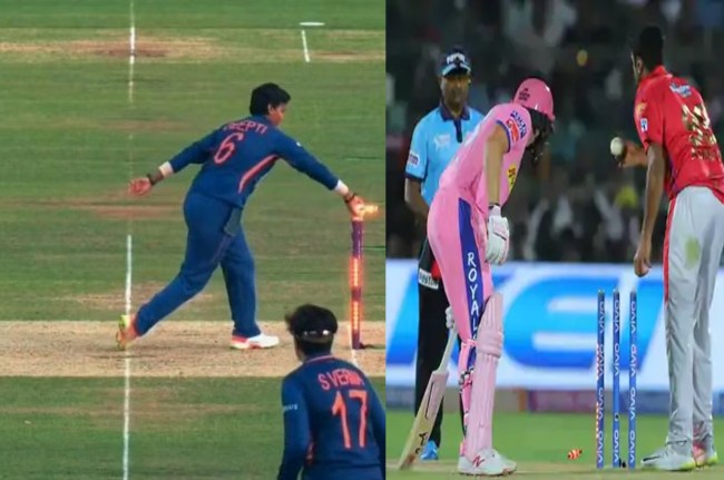 दरअसल, दीप्ति शर्मा के गेंद फेंकने से पहले ही शार्लोट अपने क्रीज से काफी बाहर निकल गईं थीं। ये देखकर दीप्ति शर्मा ने तुरंत उन्हें आउट कर दिया। दीप्ति ने शार्लोट को उसी तरह आउट कर दिया, जिस तरह अश्विन ने जोस बटलर को किया था। इसके बाद ट्विटर पर अश्विन काफी ट्रेंड होने लगे। सब दीप्ति शर्मा की तुलना रविचंद्रन अश्विन से करने लगे।