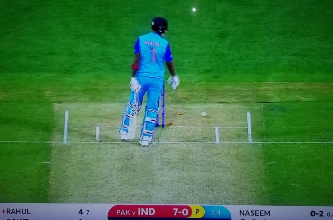 नई दिल्ली: भारत-पाकिस्तान का मैच फंसा हुआ है। मेलबर्न में खेले जा रहे वर्ल्ड कप के मैच में भारत बैकफुट पर नजर आ रही है। 6 ओवर में भारत के तीन विकेट गिर गए हैं। पाकिस्तान के खिलाफ ओपनर्स केएल राहुल और रोहित शर्मा फ्लॉप रहे। पाकिस्तान के तेज गेंदबाज नसीम शाह ने राहुल को 4 रन पर पैवेलिनय भेजा। 2021 के टी-20 वर्ल्ड कप में पाकिस्तान के खिलाफ 0 रन पर आउट होने वाले कप्तान रोहित शर्मा भी फ्लॉप रहे। वे 4 रन बनाकर हारिस रउफ का शिकार हुए।