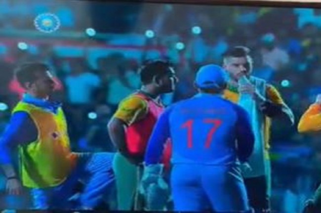 बता दें कि भारत और साउथ अफ्रीका के बीच खेले गए इस मैच में युजवेंद्र चहल प्लेइंग इलेवन में शामिल नहीं थे लेकिन फिर भी उन्होंने अपनी मस्ती के माध्यम से अपनी मौजूदगी जरुर दर्ज कराई। दरअसल साउथ अफ्रीका की बल्लेबाज़ी के दौरान फ्लड लाइट में आई दिक्कत के चलते मैच को थोड़ी देर के लिए रोक दिया गया। इसी बीच यूजी चहल पानी देने के लिए मैदान पर आए और उन्होंने ऋषभ पंत, क्विंटन डी कॉक, एडन मारक्रम के साथ खड़े तबरेज शम्सी को अचानक पीछे से पैर उठाकर टच किया और ये वाक्या कैमरे में भी कैद हो गया।