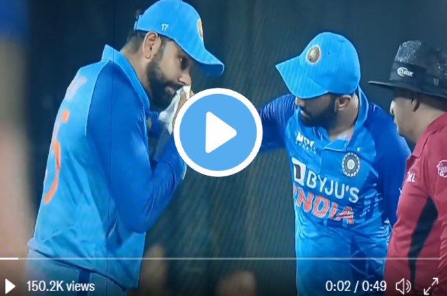 इस मैच में टीम इंडिया के कप्तान रोहित शर्मा का समर्पण देखने को मिला है। देश और खेल के लिए पूरी तरह समर्पित रोहित शर्मा नाक से खून निकलने के बाद भी मैदान पर डटे रहे। वायरल हुए वीडियो में दिख रहा है कि रोहित शर्मा साथी दिनेश कार्तिक और हर्षल पटेल के साथ नजर आ रहे हैं। उनकी नाक से खून निकलने के बाद भी उन्होंने अपना काम करना जारी रखा।