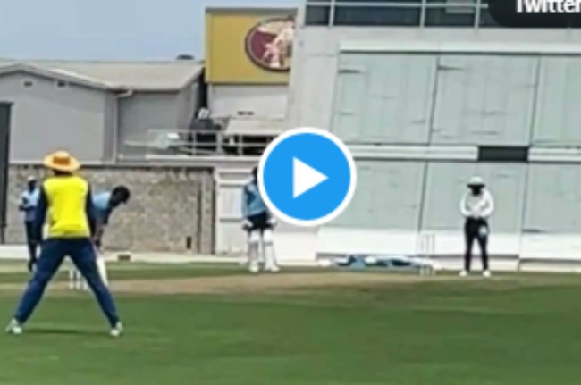 Virat Kohli's dismissal in the practice match in Barbados today. Jaydev Unadkat claimed his wicket. #WIvIND